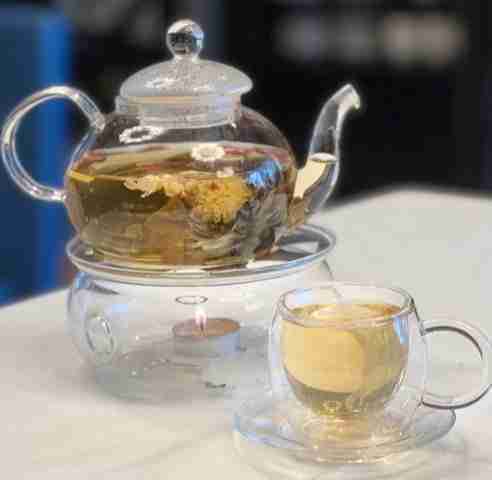 Pour la boisson vous aurez le choix entre deux thés soit l’Oriental Beauty with Wolfberries (Beauté orientale aux airelles) ou Fleurs de printemps. Mon moment Zen : la beauté discrète de la fleur de thé qui s’épanouit lentement devant moi dans sa théière transparente.