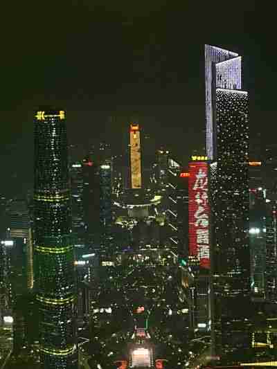 Elle vaut vraiment le détour, la tour! Avec ses 604 mètres des pieds à la tête, elle fait partie des plus hautes tours du monde. La seconde en Chine après celle de Shangaï. Lorsque vient la nuit, elle épuise toute la palette des couleurs fluos. Un spectacle qui s’apprécie soit de l’extérieur à l’occasion d’une croisière sur la rivière des Perles, soit de l’intérieur. C’est l’option que nous avons retenue pour terminer notre journée dans les étoiles. Et hop dans l’ascenseur, en partie vitré, qui nous hisse au 104e étage. ET à 450 mètres d’altitude, vue exceptionnelle sur la ville nouvelle… Ici aussi, les architectes rivalisent de prouesses… généreusement illuminées. Merci les diodes!