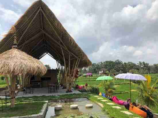 Au milieu des rizières d’Ubud, sous une grande tente blanche, se cache ce joli café restaurant. Cet établissement offre une atmosphère enchanteresse, parfaite pour se détendre et savourer un repas délicieux. Demandez une table basse au bout de la terrasse pour profiter de plus près de la vue sur la nature. Pour vous y rendre, empruntez un petit sentier pavé depuis l’axe principal d’Ubud. Après vous être restauré, continuez sur le sentier pour y découvrir la vie typique des habitants et des paysans d’Ubud.