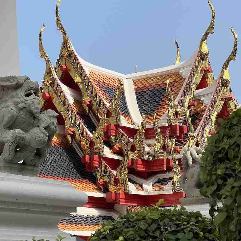 Mais l’ambiance est restée plaisante et le service aimable. La ville est vibrante. Un étonnement nous attend à chaque coin de rue : des empilements de noix de coco, un camion tout rutilant et couvert de décorations, une maison des esprits tel un temple miniature rempli de figurines, des épis de maïs qui cuisent au barbecue! Et quel plaisir de visiter temples et musées sans la foule d’autrefois, d’avoir la meilleure table dans un rooftop, de se déplacer sans encombre!