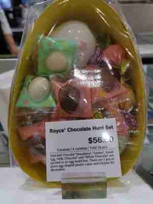Présent à Singapour avec 6 boutiques/corners, le fameux japonais Royce connu pour son nama chocolate (une ganache à la crème fraiche) propose dans ses boutiques un easter kit…Une boite composée de 3 œufs, des stickers pour les décorer et des chocolats pour les garnir.