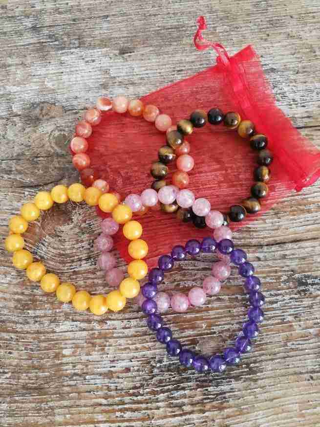 Chaque jour, par exemple avant votre séance de méditation ou de yoga, ou le soir avant de vous endormir, asseyez-vous confortablement, prenez votre bracelet en main, avec vos doigts sur l’une des perles et prenez le temps de trouver au moins 10 choses pour lesquelles vous êtes reconnaissant. Ressentez chaque perle entre vos doigts, visualisez chaque bienfait pour chaque perle entre vos doigts et remerciez à voix haute.