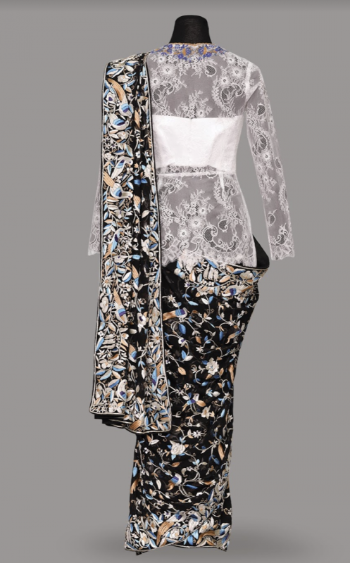 Cet ensemble provient des ateliers de la marque Stylemart. A l’origine une boutique et entreprise de couture indienne fondée dans les années 1950. En 1999, Kavita Thulasidas a repris les rênes de l’entreprise familiale. Aujourd’hui, Stylemart est surtout connue pour ses créations sur mesure qui s’inspirent des silhouettes occidentales et de l’art asiatique.