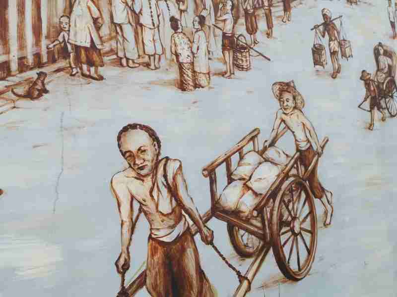 Comme à Klang, les coolies adoptent très vite le Bak kut teh à Singapour. Dans les années 60, de nombreux marchands de rue le servent le long de la Singapore River. Composé d’os (kut) de viande (bak) et d’un bouillon aromatisé (teh), il est pendant longtemps le petit déjeuner des coolies qui ont besoin de résister aux travaux de force. La viande et la moelle osseuse fortifient leur système immunitaire et leur ossature. Tandis que le bouillon hydrate et apaise leurs maux de gorge dus à la consommation des cendres d’opium.
