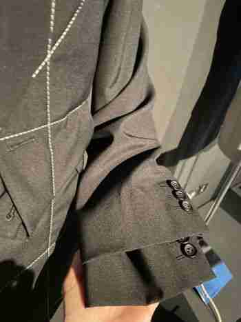 De Rei Kawakubo chez Comme des Garçons, une veste dont vous découvrirez qu’elle cache une deuxième manche sous la première… bref deux bras, quatre manches, voilà de quoi les retrousser, hein Sam ?
