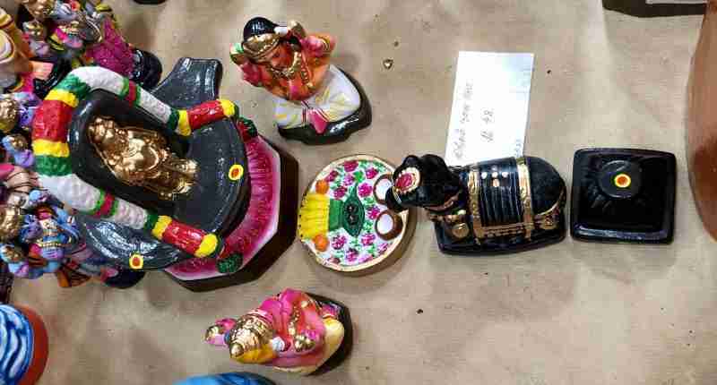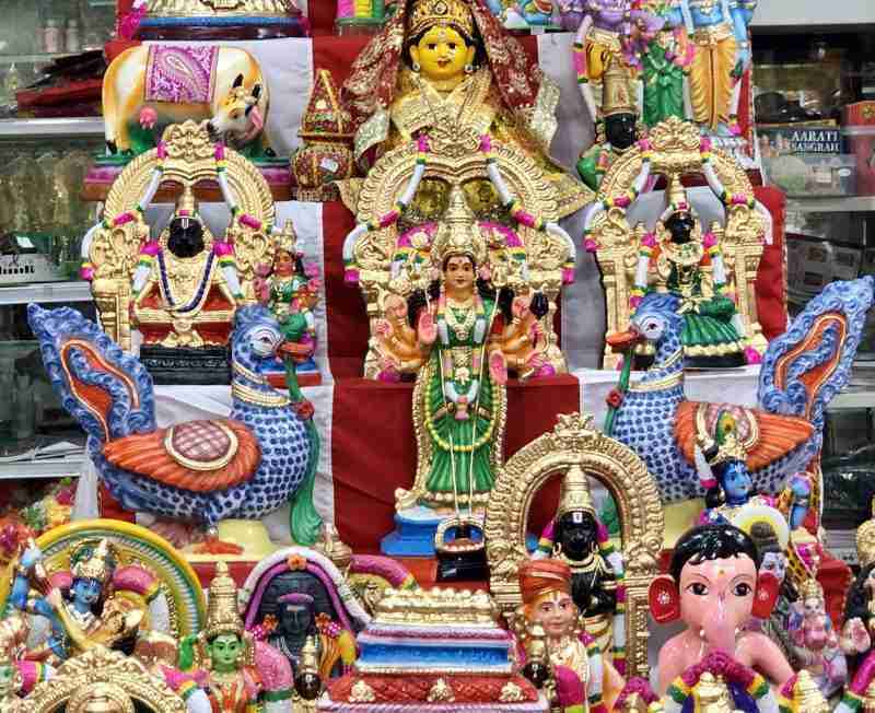 A Singapour, on trouve des figurines devant le magasin Jothi sur Campbell Lane. Attention, plus Navaratri approche, moins il y a de choix. Les étalages se vident. Et c’est encore plus vrai en cette année particulière où il n’y a pas quasi aucun stock. Ce qui signifie qu’une fois un lot ou une figurine sera vendu… il ou elle ne sera pas remplacé. On peut également les commander sur le net.