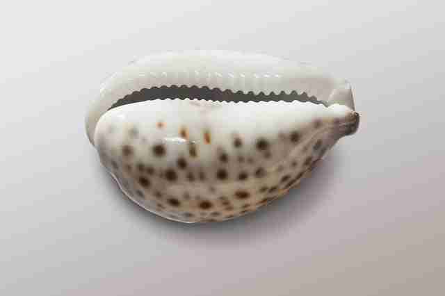 Ce qui semble être à première vue un ensemble ovale de lignes et points est en fait le marquage de la coquille d’une famille de coquillages du nom de Cauri. Autrefois, ce petit mollusque gastéropode de la famille des Cypraeidae (les porcelaines