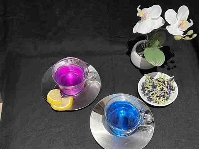 Un autre effet saisissant est que le thé change de couleur suivant le niveau de pH de l’eau. Tentez l’expérience, ajoutez-y par exemple du jus de citron. Votre thé deviendra mauve voire violet.