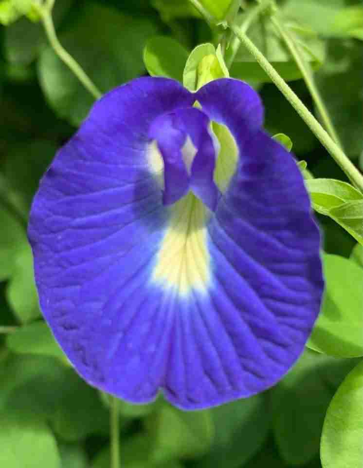 Il s’agit d’une infusion des pétales de la fleur au nom scientifique coquin « Clitoria ternatea ». Elle porte en anglais le joli nom « Butterfly pea flower tea » bien moins suggestif. D’après Wikipedia, cette plante pousse dans la plupart des pays d’Asie du Sud-Est et aurait des vertus anti-oxydantes.