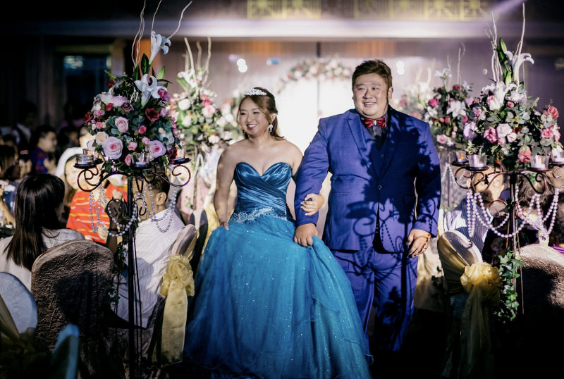 La plupart des mariages chinois comportent deux parties : la cérémonie du thé (évènement privé) et un banquet (grande réception) .