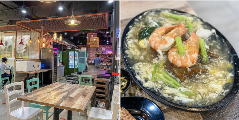La décoration intérieure est de style kampong (village en Malais), avec des cages à oiseaux suspendues, des tables en bois et des chaises vertes. Il n’y a pas de service à table – Il faut commander son repas au comptoir et le récupérer lorsque le buzzer vibre. Clara a commandé un Seafood Hor Fun regorgeant de wok hei.
