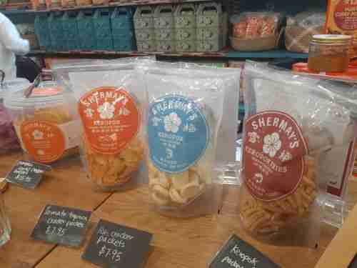 Un petit panier garni de produits locaux: chips de lentilles (Keropok), chips de crevettes, sachet de nyonya curry powder, pot de Sambal. Pratiques à transporter et à acheter chez Shermay’s, qui propose aussi ses recettes en ligne. Découvrir les produits ici.