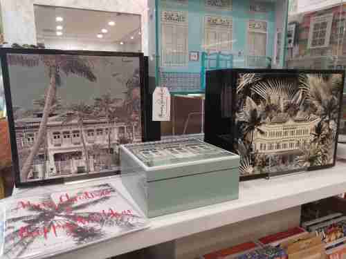 qui présente des motifs peranakan, les frontons de shophouses, de l’Hôtel Raffles etc. Editions Memory Boards