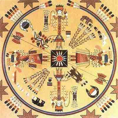Etrangement, on retrouve des pratiques tout à fait comparables chez les Indiens d’Amérique: plusieurs tribus, en particulier les Navajos, réalisent des mandalas en sable sur le sol pour invoquer les forces de la nature et obtenir une guérison.