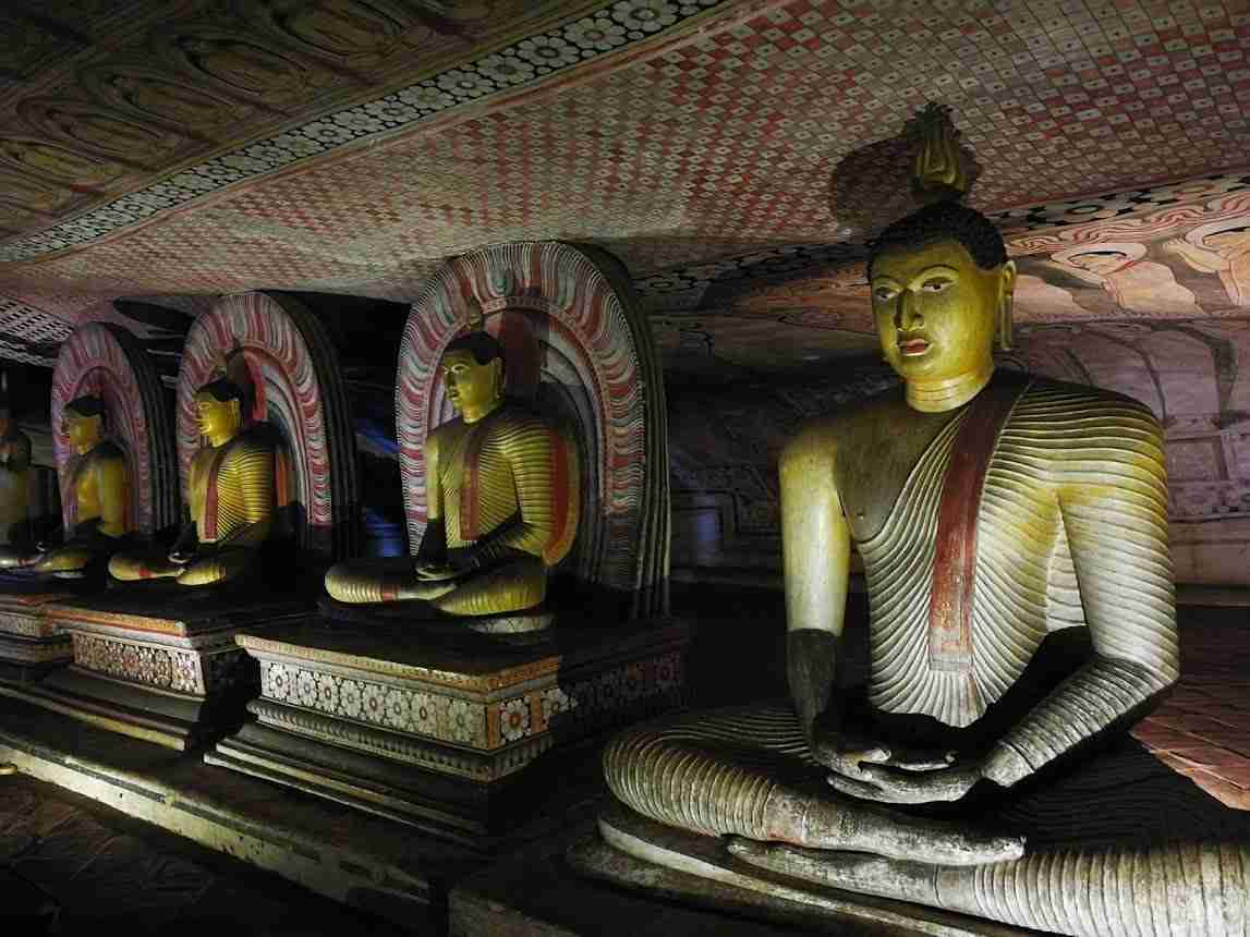 Vous visitez ensuite les grottes du temple du Rocher à Dambulla qui renferment une multitude de statues de Bouddha et de belles fresques.