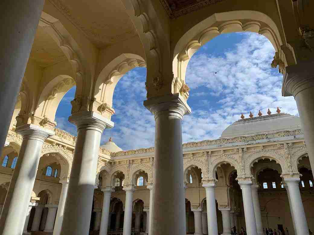 Visite ensuite du palais de Thirumalai Nayak, ancien siège de la dynastie dirigeante Nayaka de Madurai. Le palais est un témoignage classique de la fusion architecturale des styles dravidien et islamique.