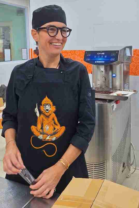 L’utilisation de véritable matériel de pro en cuisine, comme les fouets Matfer. Et pour le chocolat, des machines françaises et italiennes (elle sait même les démonter !).