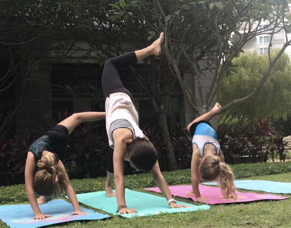 Elle est bien chargée ! Je collabore avec le Club Med de Bintan où je donne des cours de yoga dans le cadre de leur programme Body and Soul, pour adultes et enfants.