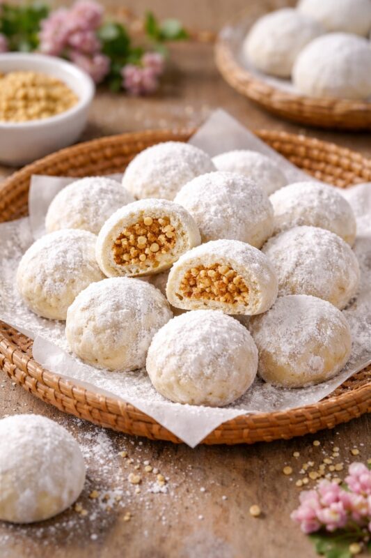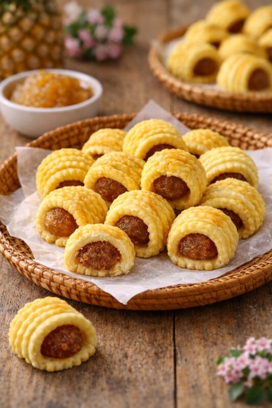 Les semaines précédant la fête sont aussi celles des kuih : les petits gâteaux et biscuits maison qui envahissent les boîtes en métal posées sur toutes les tables lors des open houses. Parmi les classiques : les kuih makmur (sablés fourrés à la noix de cajou), les bahulu (gâteaux moelleux en forme de fleur) et les pineapple tarts, feuilletés à la confiture d’ananas, que l’on retrouve aussi bien à Hari Raya qu’au Nouvel An chinois, reflet discret du brassage culturel singapourien.