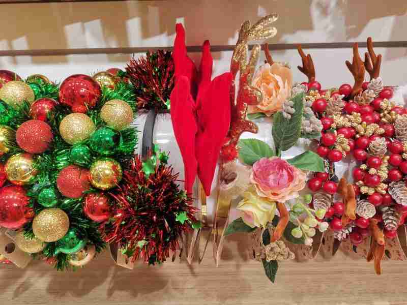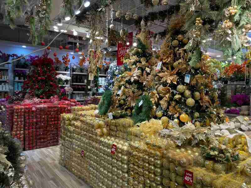 Pour des boules et des guirlandes sans fioriture mais dans tous les formats et toutes les couleurs, je vous recommande Ming Sing Flowers sur Arab Street. C’est une vraie caverne d’Alibaba.