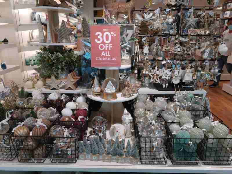 Plus haut de gamme, Crate&Barrel (fermé depuis juillet 2023) liquide aussi les articles de Noël avec 20 à 40% de remise. Il y a là aussi de quoi équiper votre sapin. Déco élégante, tendance minimaliste, le blanc et l’argent dominent les rayons.