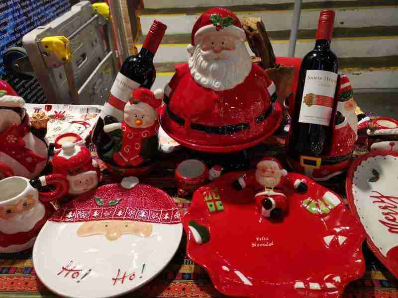 Une vaisselle rouge et verte ou même blanche frappée de flocons…Vous trouverez ça au rayon vaisselle du grand magasin Tang, et même quelques articles chez Marks&Spencer.