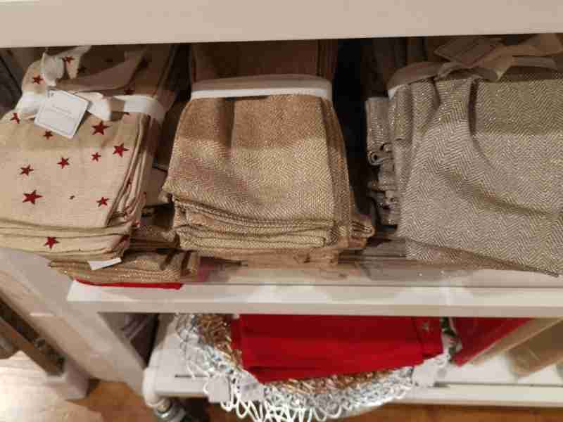 Vous trouverez sans difficulté du linge de Noël chez Spotlight (serviettes et nappes). Pour du linge argenté, doré, et même blanc orné de fils qui brillent, visez plutôt Bed Bath N’Table…Dans cette enseigne, de belles serviettes brodées et déjà bradées!