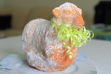 Dans la tradition alsacienne, il prend la forme du Lamala, un gâteau saupoudré de sucre glace. Symbole de pureté et d’innocence, il porte chance à ceux qui en mangent.